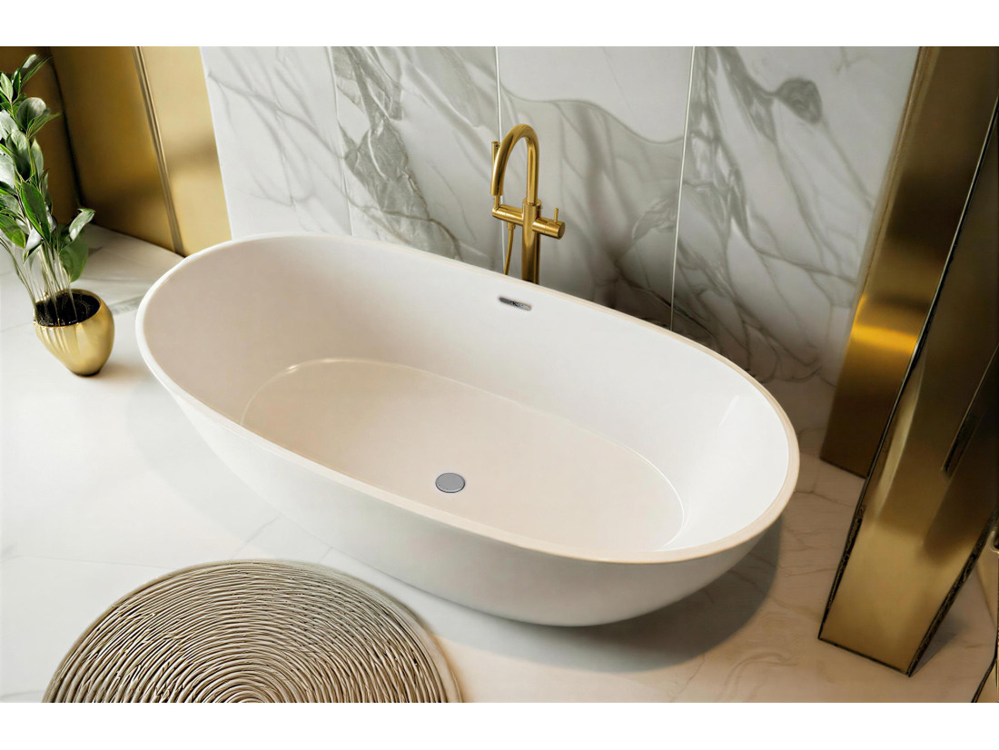 Die freistehende Badewanne ULF ist in der Größe 170x75 cm verfügbar. Sie wurde vollständig aus einer Acrylplatte hergestellt und deswegen besitzt sie weder Schürze noch Verbindungen.