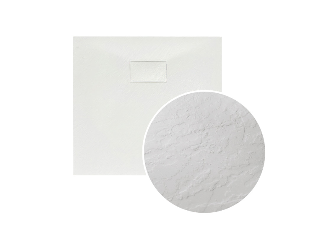 Die bodenbündige Duschwanne VIDAR ist die perfekte Ergänzung, um Ihre Duscherlebnisse zu optimieren. Dank ihrem natürlichen Finish in weißer Farbe und natürlichen steinigen Look wird Ihr Badezimmer zu einem Ort der Entspannung und Eleganz.