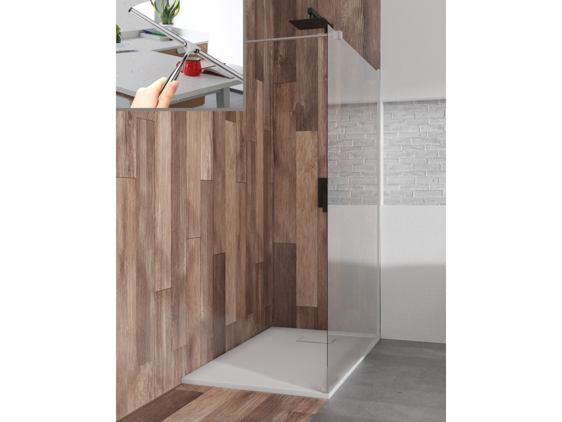 Die Glaswand bietet maximale Anpassungsfähigkeit für Ihren individuellen Duschraum. Mit gehärtetem 6-mm-Sicherheitsglas und der einzigartigen Nano Clean-Beschichtung erleben Sie Langlebigkeit, Sicherheit und einfache Reinigung. Die Nano Clean-Beschichtung sorgt dafür, dass Wassertropfen nicht an der Glasoberfläche haften bleiben und keine charakteristischen Ablagerungen hinterlassen.