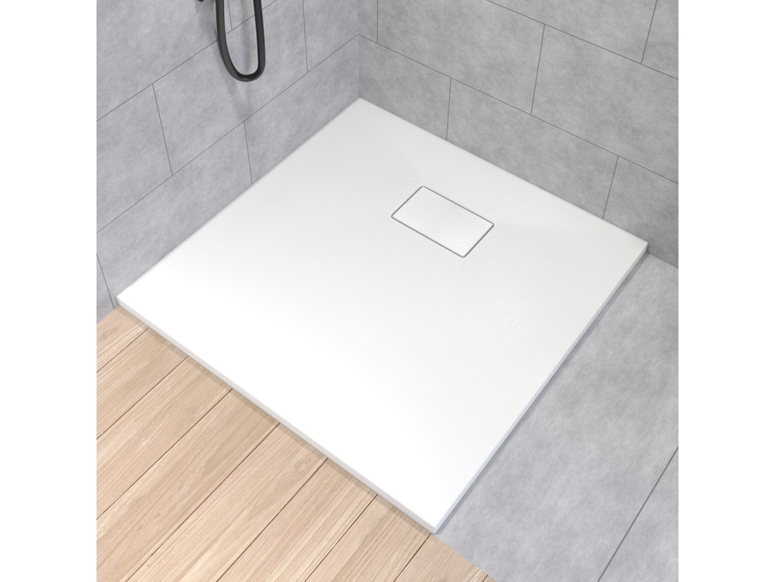 Die bodenbündige Duschwanne VIDAR ist die perfekte Ergänzung, um Ihre Duscherlebnisse zu optimieren. Dank ihrem natürlichen Finish in weißer Farbe und natürlichen steinigen Look wird Ihr Badezimmer zu einem Ort der Entspannung und Eleganz.