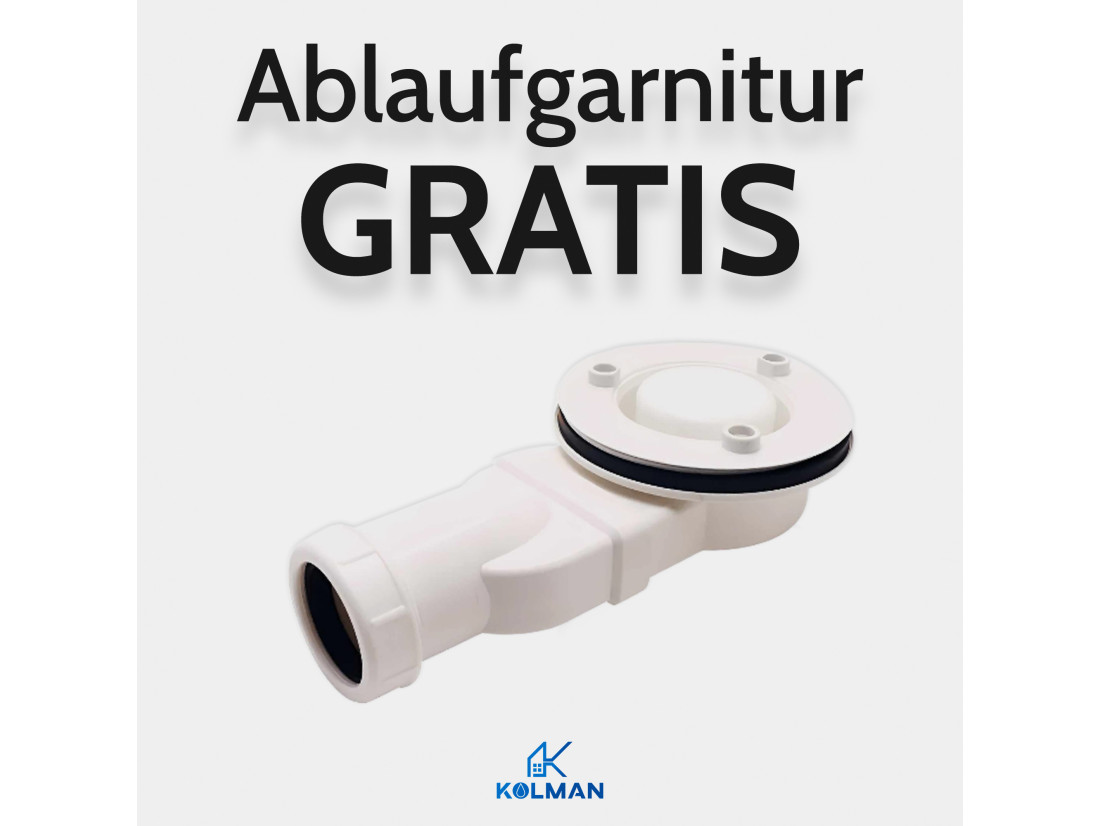 Die Duschwanne ist mit einem hochwertigen Ablauf mit einem Durchmesser von ⌀ 90 ausgestattet, der eine hervorragende Leistung und effiziente Wasserabführung gewährleistet.